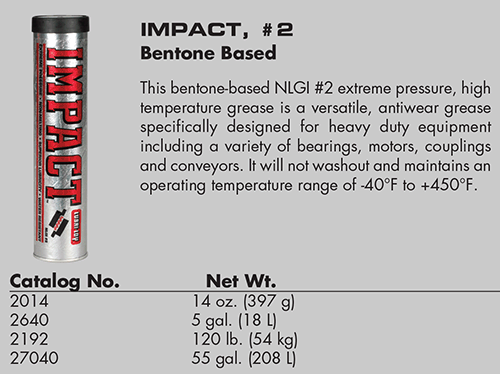 << Back to Products High Performance Greases Lubri-Lith Syn M, #2 Impact-G, #3 Lubri-Lith LG, #1 & #2 Lubri-Poly EP, #2 Impact, #2 Lubri-Syn No.9, #2